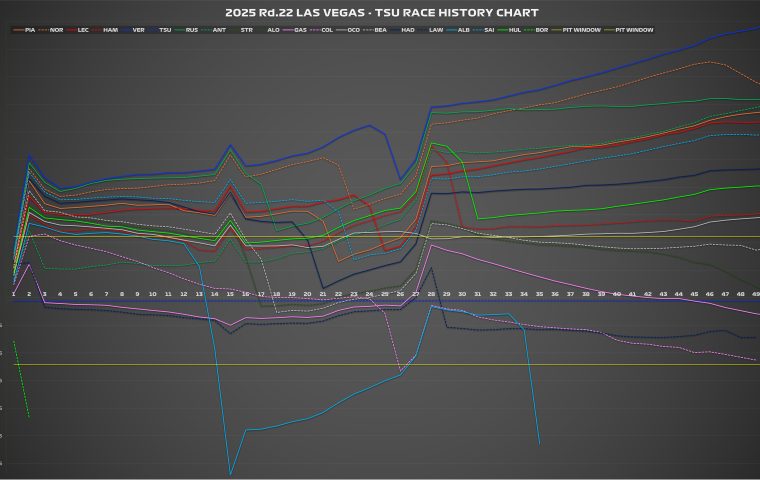 第22戦ラスベガスGP決勝の角田裕毅は、ピットレーンスタートで1周目にピットインしてミディアムからハードに履き替え、最...