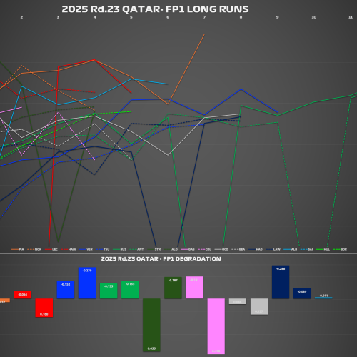 カタールGPのスプリント予選における各マシンのパフォーマンスやマシン特性を、データを元に詳細に分析していこう。スプ...