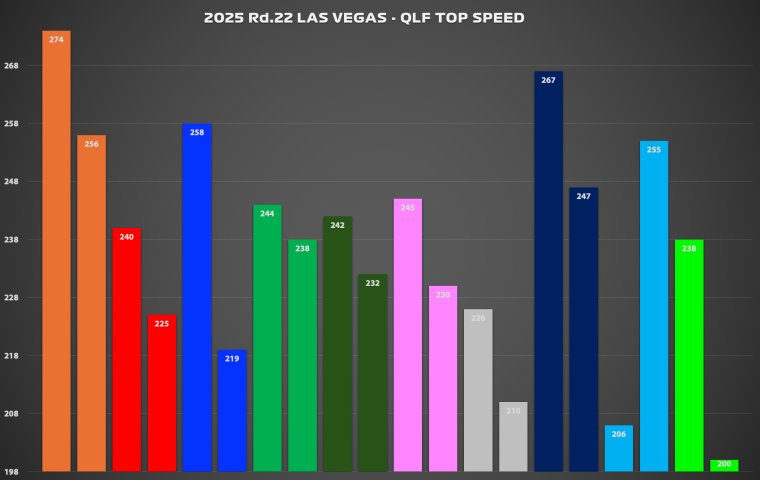 最高速を比較することで各マシンの直線競争力とダウンフォースレベルを分析することができる。ラスベガスストリップ・サー...
