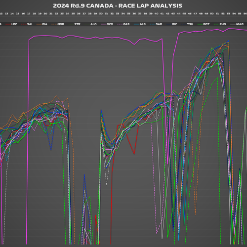 2024年の第9戦カナダGP決勝のレースペース分析に続き、レース戦略を分析していこう。全ドライバーの全ギャップをグ...