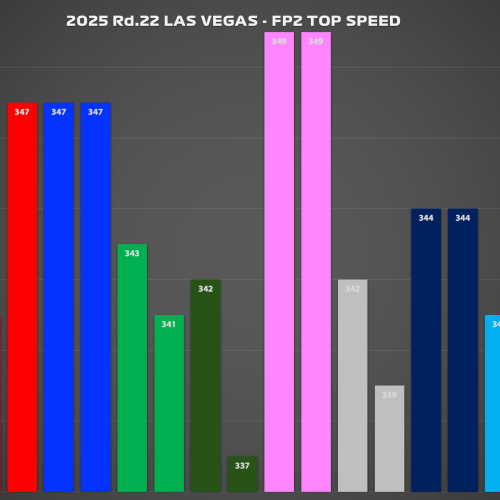 最高速を比較することで各マシンの直線競争力とダウンフォースレベルを分析することができる。ラスベガスストリップ・サー...