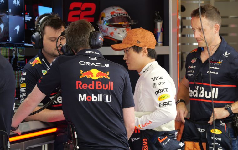 角田裕毅はUSGP決勝の34周目のターン15でオリバー・ベアマンと交錯し、ベアマンがコースオフしてポジションを落とした...