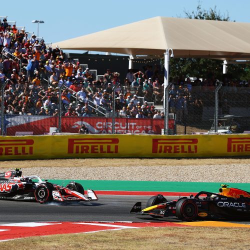角田裕毅はUSGP決勝の34周目のターン15でオリバー・ベアマンと交錯し、ベアマンがコースオフしてポジションを落とした...