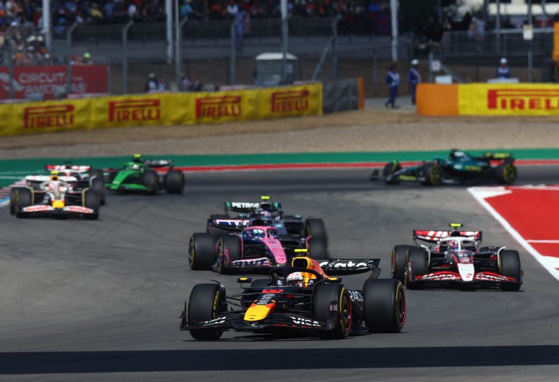 USGPのスプリントレースは、スタート直後のターン1で多重事故が発生しグリッド上位の4台がリタイアする中、ポールポジションのマックス・フェルスタッペンがポールトゥウイン。スタートの混乱を縫って7位に大きく浮上した角田裕毅もそのポジションを守ってフィニッシュを果たした。
