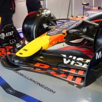 レッドブルのフロントウイングこんなたわんでましたっけ?ってくらいアーチを描いてますね。