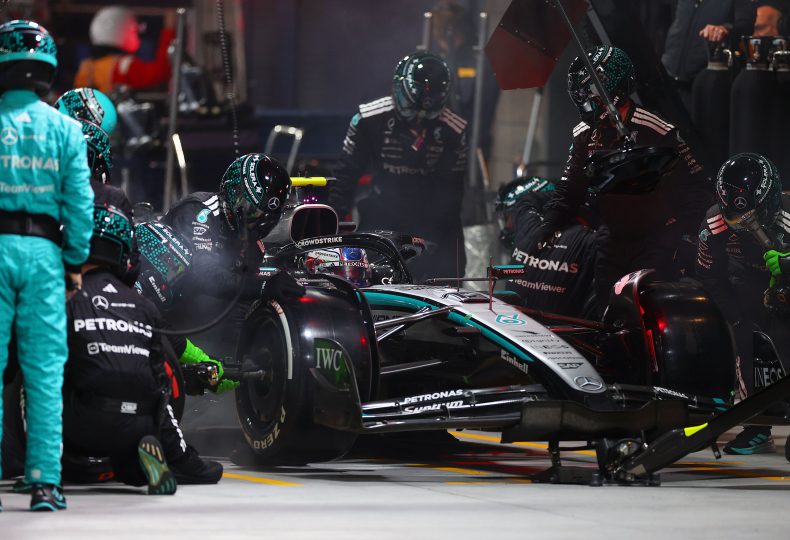 第22戦ラスベガスGP決勝の中団グループは予選3位のカルロス・サインツがレース前半をリードしたものの、2周目にピットインし実質ノンストップ作戦のアンドレア・キミ・アントネッリが4位まで浮上し、オスカー・ピアストリ、シャルル・ルクレールもサインツを逆転してフィニッシュしてみせた。