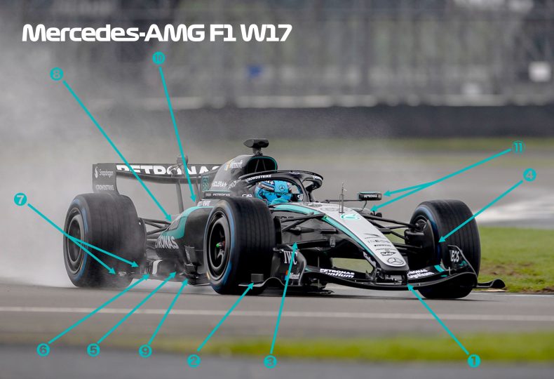 2026年1月21日、メルセデスAMGが2026年型マシンF1 W17 E PERFORMANCEをシルバーストンでシェイクダウン。先に公開されたレンダリング画像と同じ方向性ではあるものの、実車では異なる部分も多々見られたため、そのディテールを追加で解説しておこう。