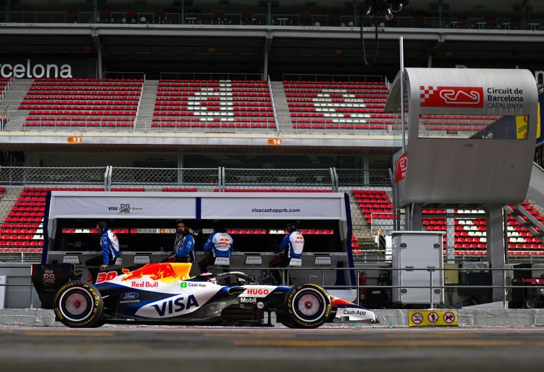 レーシングブルズはバルセロナ合同テスト初日にリアム・ローソンがドライブを担当して午前に42周、午後に46周で計88周を走行。午前中にコース上にマシンを止めて赤旗を出す場面もあったが、大事には至らなかったという。
