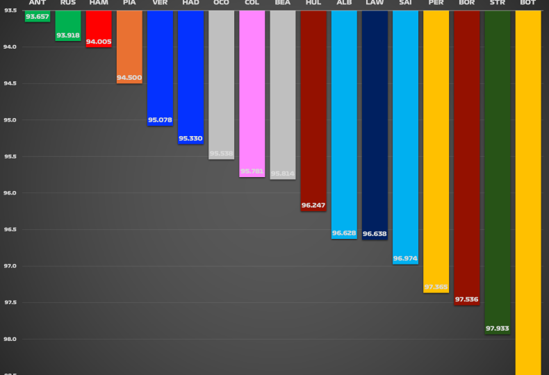 3日目セッションにおける各ドライバーの自己ベストタイムに加えて、セクタータイムの自己ベストを並べ、それらを足して理論上可能な実力(IDEAL LAP TIME=理論値)を集計すると以下のようになる。