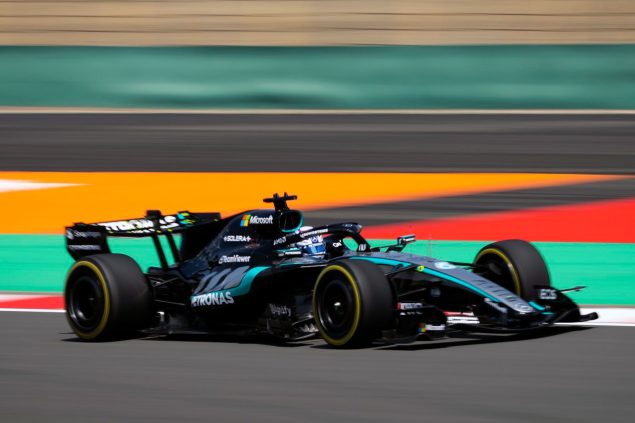 3周目のターン14でラッセルはエネルギーを使ってハミルトンをパスするが、4周目のターン1ではハミルトンがアウトからパスして再逆転。ペースはメルセデスAMGが優勢に見えるが、抜ききれず3台のバトルが続く。アントネッリは1台ずつ中団勢を抜いていき、4周目のターン14でピアストリを抜いて6位へ上がるが5周目のターン1で再び順位が入れ替わる。