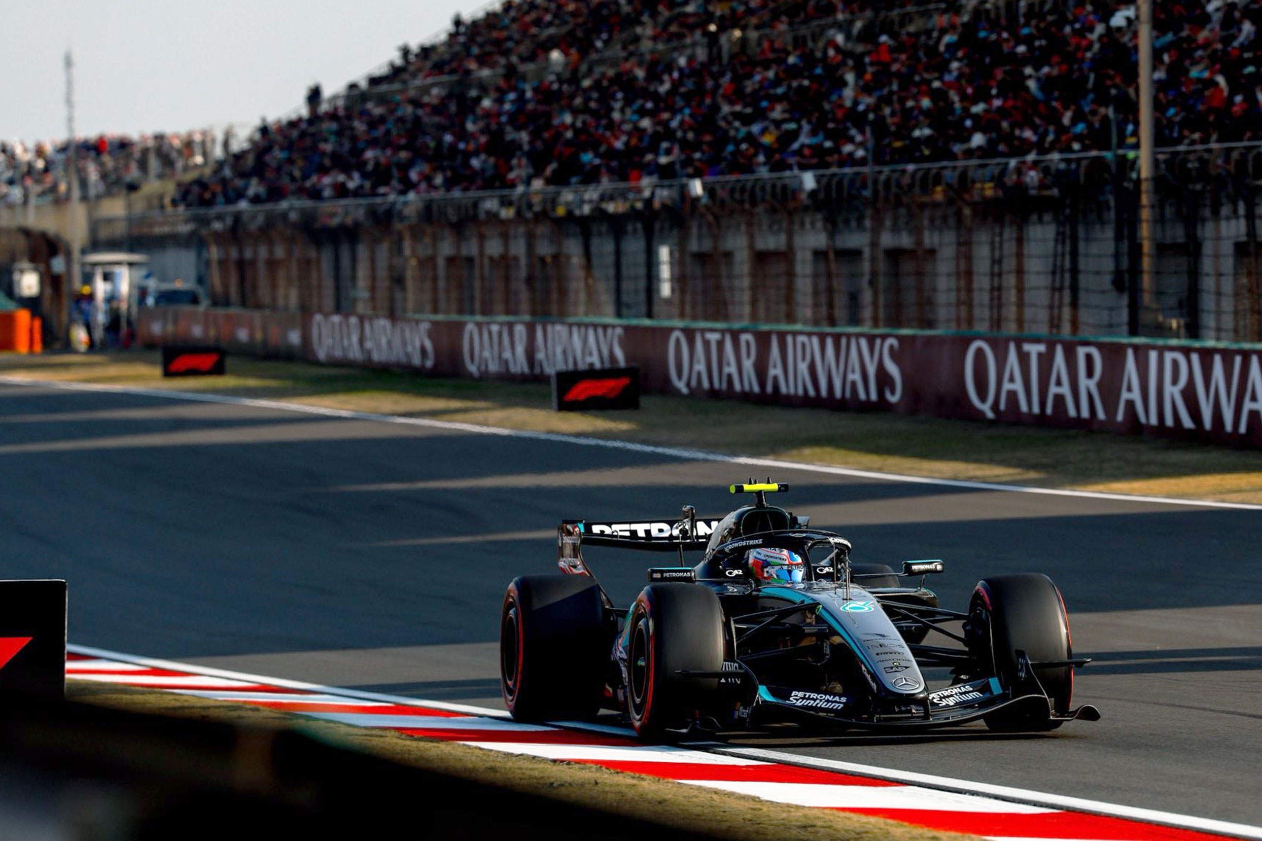 ラッセルはターン1でアンダーステアが強くアボートして再アタックし、アントネッリがセクター2最速で1分32秒443でトップへ。ルクレールが0.043秒差の2位、ラッセルはターン16でボルトレートが入口の縁石で挙動を乱してコースオフしたため出されたダブルイエローで更新できず0.080秒差の3位、ハミルトンが0.124秒差の4位、ノリスが0.467秒差の5位、ガスリーが最後に0.560秒差の6位。ラッセルはアタックラップでもアンダース手が強く、フロントウイングと右側フロアの問題を疑いマシンの確認を要求する。