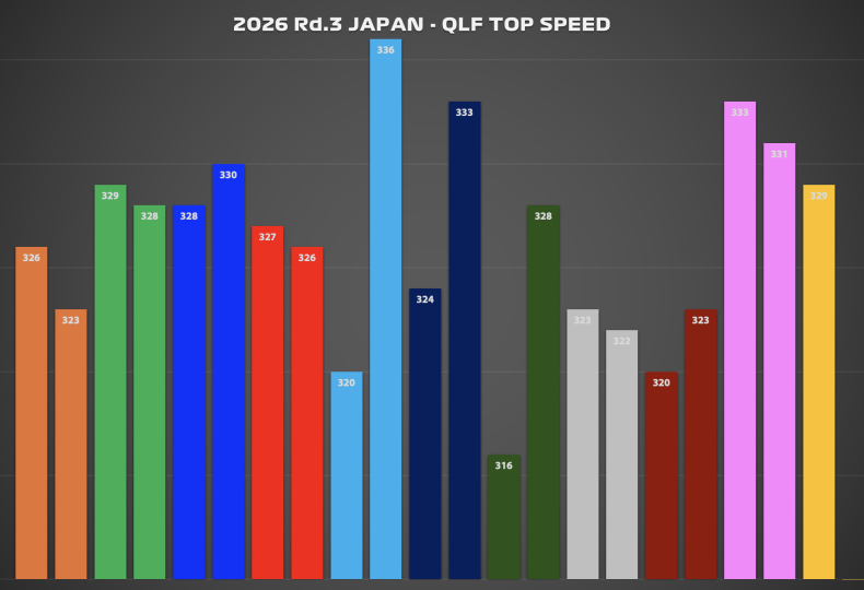 鈴鹿サーキットのスピードトラップはターン15の70m先の地点で計測しているが、2026年型マシンのエネルギーマネージメントではディプロイメントが切れており、本来の最高速が記録できる場所ではなくなってしまっている。