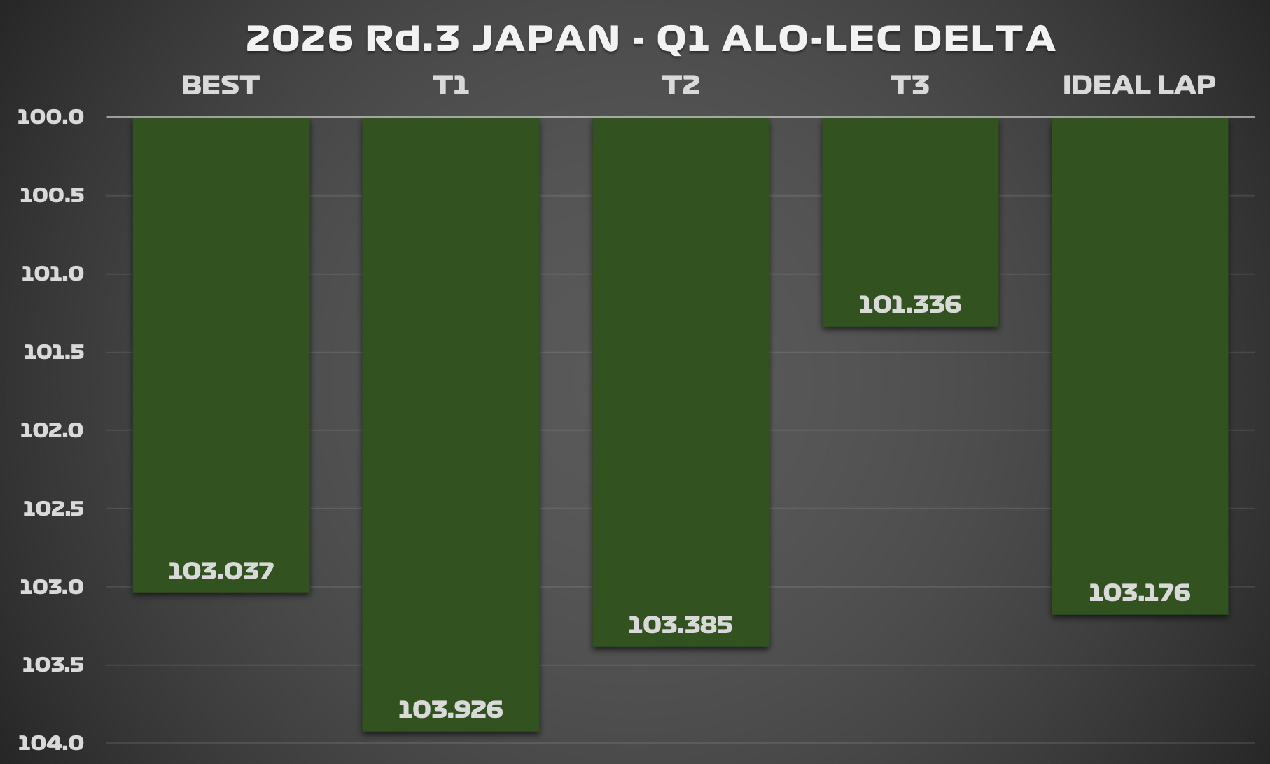 日本GPの予選でアストンマーティンとトップとの差がどこにどれだけあったのかを詳細に分析しよう。
