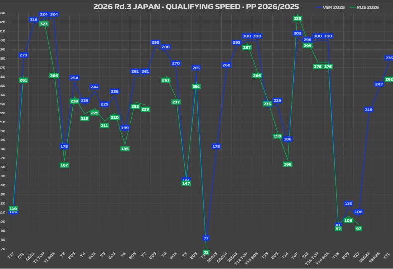 【分析】2025/26年比較:タイム差は中高速コーナーにあり、直線電欠にあらず【2026 Rd.3 JPN】
