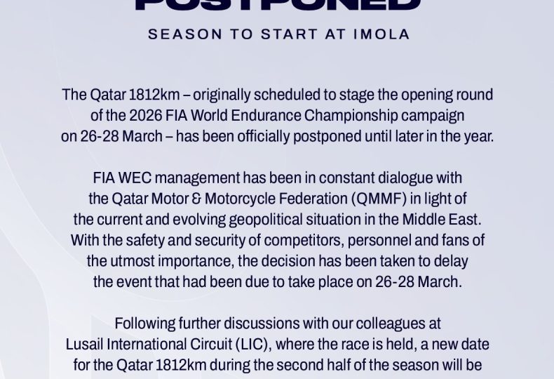 3月26日〜28日のWECのカタールラウンドが「延期」になりました。